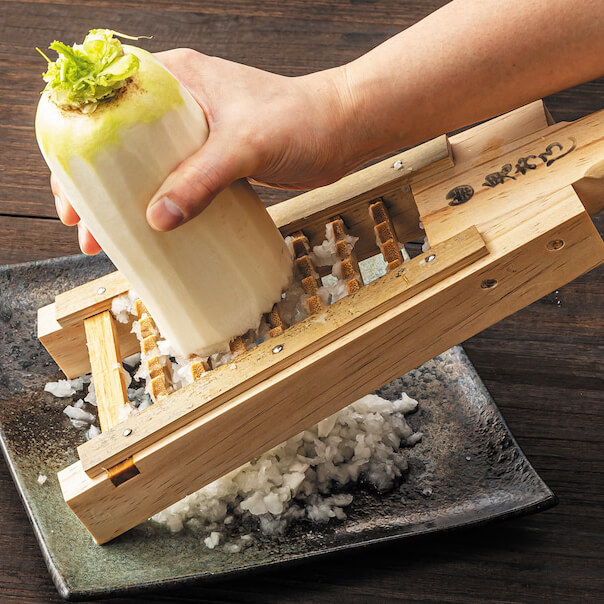 『しゅうちゃんぽん酢』のさわやかな風味と絶妙な酸味が水分を逃さず、たっぷり空気を含んでいる大根おろしの美味しさをさらに引き立てます。
